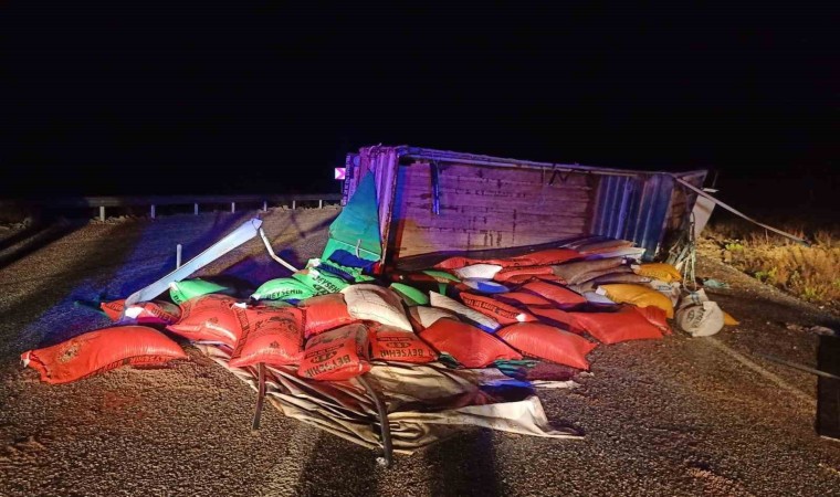 Kaza, Yeni Antalya Konya Karayolu Beydiğin Mahallesi’nde meydana geldi. Manavgat’a seyir halindeki Celalettin Poyraz’ın kullandığı 07 L 5321 plakalı hayvan yemi yüklü kamyon, sürücüsünün direksiyon hakimiyetini kaybetmesi sonucu yan yattı.