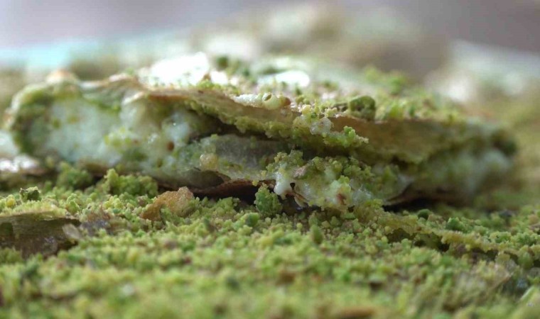 “Fırından çıkan katmerin üzerine Antep fıstığı serpilir ve servise hazır hale gelir”