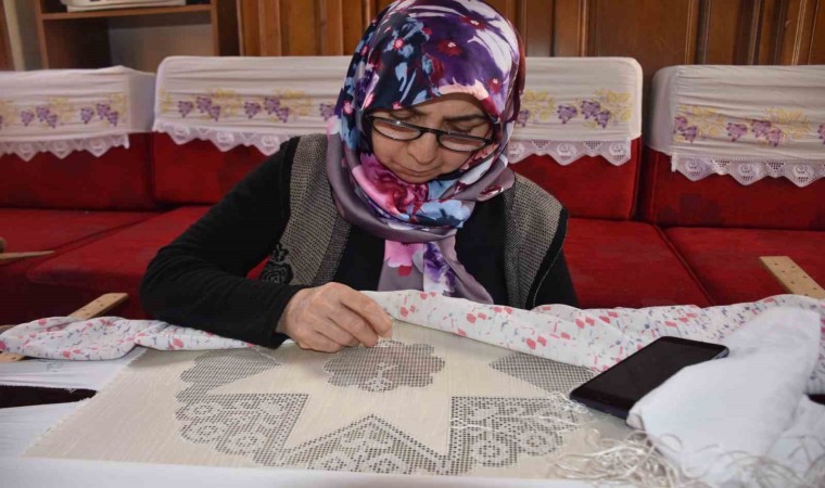Antep işini küçük yaşlarda öğrendiğini anlatan Hülya Yeşil, “Ben 12-13 yaşlarındayken teyzemlerle başladım. Antep işi her yerde olmuyor. Bazı yerler var. Orada biraz öğrenmiştim. Sonra komşumuzdan öğrendim. Antep işini severek yapıyoruz. Aile ekonomimize önemli bir destek” dedi.