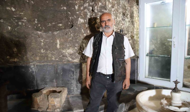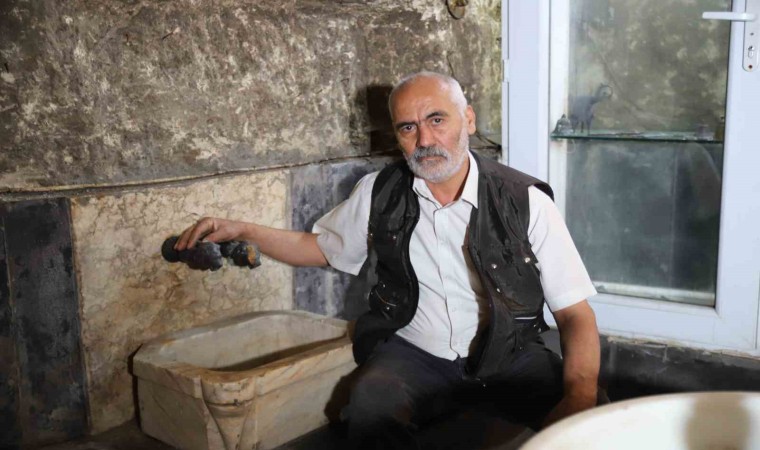 Tüm mal varlığını satarak antikaya yatıran Hanifi Özaslan müzeye çevirdiği evinin altında hamam bulunan bir mağara keşfetti.