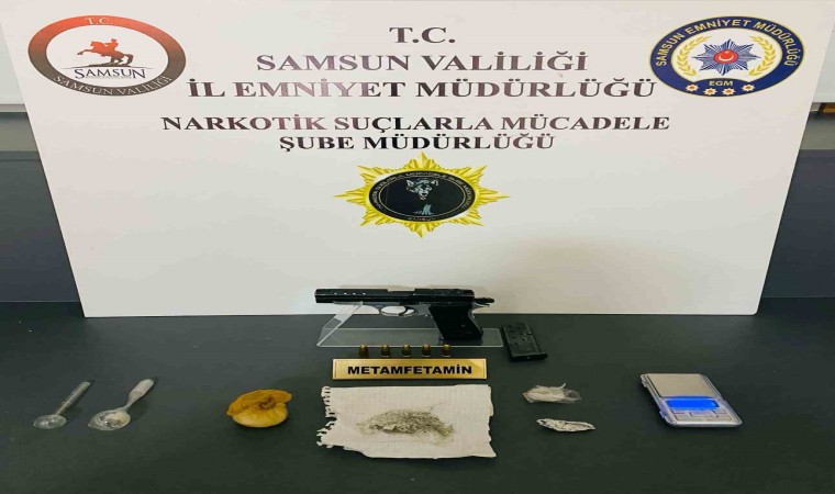 Olay, Samsun’un Atakum ilçesi Yenimahalle’de meydana geldi. Edinilen bilgiye göre, Samsun Cumhuriyet Başsavcılığı koordinesinde uyuşturucu ile mücadele kapsamında çalışma yapan Samsun Emniyet Müdürlüğü Narkotik Suçlarla Mücadele Şube Müdürlüğü ekipleri, V.K., R.Ö., S.Y., M.S. ve M.Ş. isimli şahısların bulunduğu apart daire ve araçlarında arama yaptı. Yapılan aramada 38,98 gram metamfetamin, 1 adet hassas terazi, 2 adet uyuşturucu madde kullanım aparatı, 1 adet ruhsatsız tabanca ve 5 adet tabanca fişeği ele geçirildi. Olayla ilgili 5 kişi yakalandı.