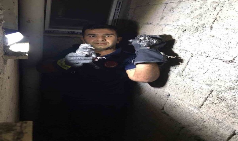 Hatay’ın İskenderun ilçesinde apartman boşluğuna düşen kuşları, itfaiye ekipleri kurtardı.