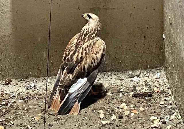 Apartman boşluğunda mahsur kalan şahin kurtarıldı