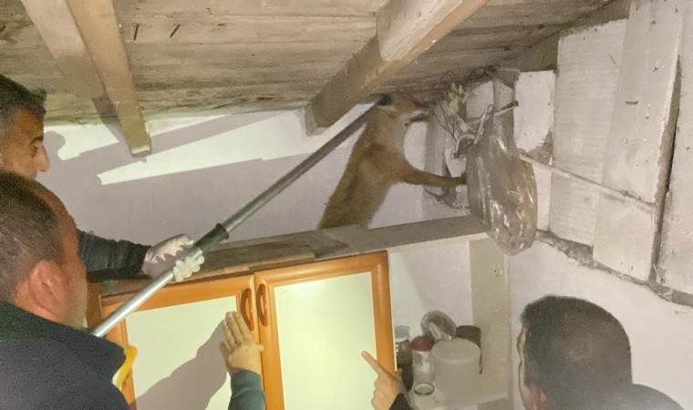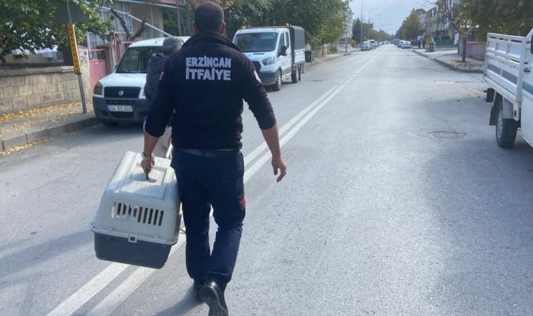 Erzincan’da bir apartmanın çatı katında sıkışarak mahsur kalan tilki itfaiye ekiplerinin çalışması sonucu kurtarıldı.