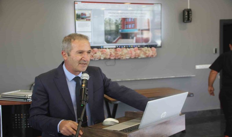 “Mesleki Eğitim Merkezimize 4 yıl önce göreve yeni bir yönetim ekibi ile başladığımızda toplam 76 aktif öğrenci mevcut olup bakanlık politikalarının mesleki eğitimi desteklemesi ve yapılan birçok tanıtım toplantısı ile 2023 Eylül ayı itibari ile ilimizde 2060 öğrenciye ulaşmış durumdadır. İlgili oda ve birlik başkanlarıyla bugün olduğu gibi düzenli bir araya gelinerek bilgilendirme toplantıları yapılmıştır. Merkezimizce yapılan 55.000 Euro bütçeli erasmus projesi ile 2021 yılında İngiltere’ye 45 gün, 2022 Mayıs ayında İspanya’da 45 gün toplam 10 öğrenci ve üç öğretmenimize 45 günlük staj imkanı sağlanmıştır. Okulumuza yeni kayıt olan öğrencilerimizin tamamına ev ziyareti projesi 4.yılına girmiş, yapılan program kapsamında ziyaretler devam etmekte olup 10 Kasım 2023 tarihi itibari ile Mesleki Eğitim + Diploma Programına kayıt olmuş tüm öğrencilere ziyaret gerçekleşmiş olacaktır. Son üç yıl içinde Milli Eğitim Bakanlığına ait tüm eğitim kurumlarında 2840 adet patent başvurusu yapılmış, bunlardan 23 tanesi patent almıştır. Bunlardan bir tanesi ilimizde merkezimiz tarafından elde edilmiştir. Türkiye’de patent alıp ticarileşen ilk ve tek patent, merkezimize aittir. Son üç yılda KUDAKA üzerinden Mesleki Eğitimin Geliştirilmesi Programından 65.000 Euro tutarında dış kaynak sağlanmış, merkezimizin metal-motor atölyesi, erkek kuaförlüğü atölyesi, kadın kuaförlüğü atölyesi ve aşçılık atölyesinin düzenlenmesi için kullanılmıştır. İlimizde açılan tekstil firmalarının desteklenmesi, eğitim sürecine alınması ve belgelendirilmesi yönünde geçen yıl temmuz ayında 8 firma ile yapılan protokol kapsamında yapılan çalışmalar sonucunda yaklaşık 500 kişinin eğitim ve belgelendirmesi yapılmıştır. Firmalar ile olan protokol sayısı artarak devam etmektedir. Öte yandan bugün toplanmamızın vesilesi olan Erzincan Meslek Ağı Projesi hakkında bilgi vermek istiyoruum. Erzincan Meslek Ağı Projesi ile Erzincan’da hizmet veren işletmelerin çırak ve kalfa taleplerinin belirlenmesi, talepler doğrultusunda mesleki eğitim çalışma ve yönlendirmelerinin yapılması, saha çalışma raporlarının düzenlenmesi ve Erzincan genelinde ara eleman arz-talep dengesinin kurulması amacıyla geliştirildi. Proje kapsamında kentte bulunan tüm işletmeler çırak ve kalfa ihtiyaçlarını Erzincan Meslek Ağı Portalı üzerinden belirtebilecek ve alınan talepler Meslek Ağı Komisyonu tarafından analiz edilerek mesleki eğitim çalışmaları ile saha analiz raporları hazırlanacak. Portal üzerinden ihtiyaç duyulan çırak ve kalfa sayıları, alan ve dal bazında, kişi sayısına göre belirtecek. İşletme sahiplerinin ustalık ve usta öğreticilik belgesi şartı istenecek olup, bağlı oldukları odalar, aylık olarak portala ihtiyaç analizlerini rapor olarak yükleyecekler. Meslek Ağı Komisyonu tarafından yönetilerek gelen taleplerin raporlaştırılması, hangi alan ve branşlarda ne kadar eksiklerin olduğunun tespiti ve sisteme girilmesi, hangi branşlarda ne kadar fazla kalfa ve çırak bulunduğunun sisteme girilmesi bu komisyon tarafından aylık olarak güncellenecek”