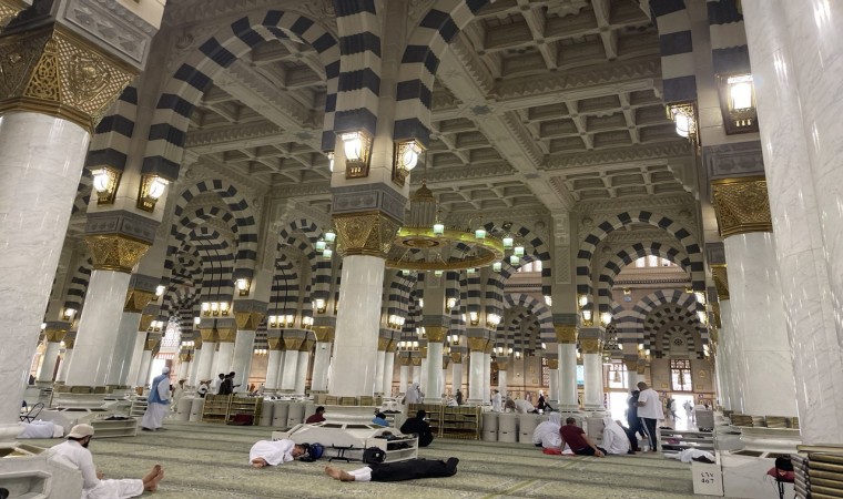 Suudi Arabistan’da hicri 1445 yılının ilk günü olan bugün hava sıcaklığı 47 dereceye ulaştı. Hac farizası sonrası Peygamber Efendimizi ziyaret için Medine-i Münevvere’ye gelen hacılara öğle saatlerinde otellerinden çıkmamaları tavsiye ediliyor. Beş vakit Mescid-i Nebevi’ye namaz kılmaya gelen hacılar, öğle ve ikindi vakitlerinde hızlıca yürüyerek dışarıda kalış sürelerini azaltıyorlar. Yaşlı ziyaretçilere ise mutlaka koyu renkli şemsiyeler kullanmaları tavsiye ediliyor. Medine-i Münevvere’de güvercinlerin öğle saatlerinde aydınlatma direklerinin gölgesinde tek sıra halinde dizilip sıcaktan korunmaya çalışması ilginç görüntüler oluşturuyor. Mescid-i Nebevi’nin bahçesinde sabah güvercinleri yemleyen ziyaretçiler, öğle saatlerinde tek sıra haline gelen kuşları görüntülemeyi ihmal etmiyorlar.