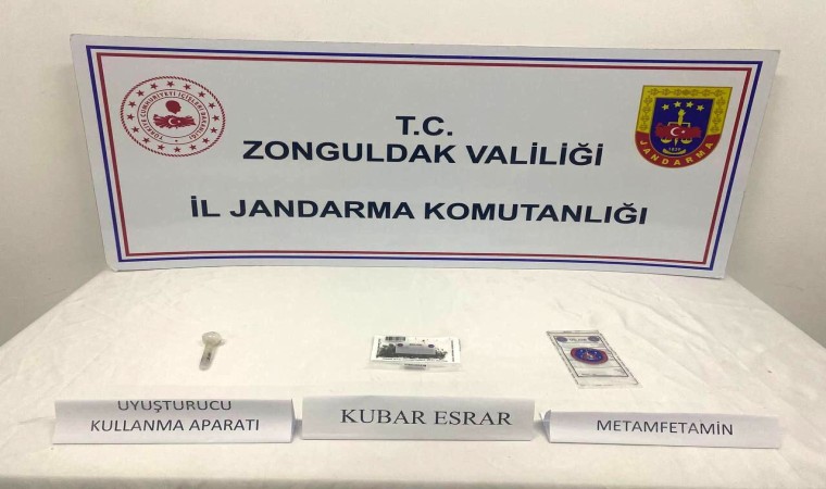 Edinilen bilgiye göre, Zonguldak İl Jandarma Komutanlığı ekiplerince, Alaplı ilçesi mülki sınırları içerisinde, alınan arama kararına istinaden bir araçta ve araç içerisindeki ve bir şahsın üzerinde yapılan aramada; 2 gram metamfetamin, 3 gram kubar esrar ve 1 adet uyuşturucu kullanma aparatı ele geçirildi.