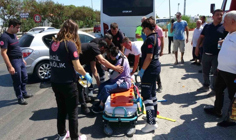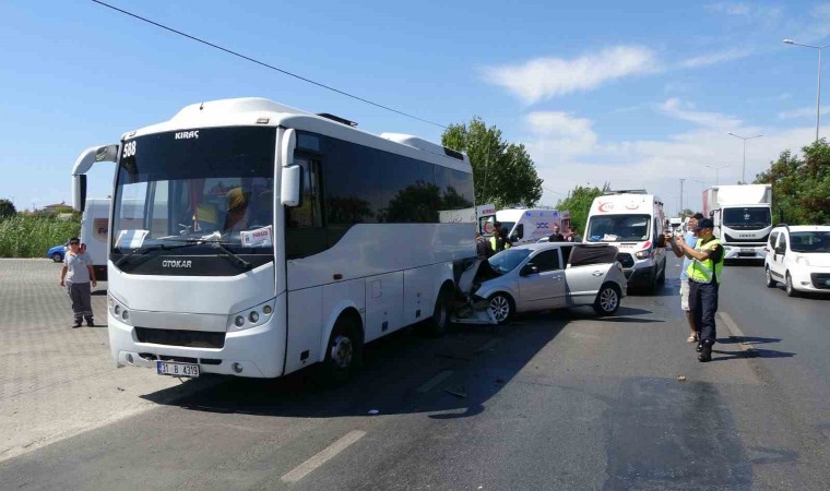 Otomobilin çarptığı tur midibüsünün arızalandığı için yol kenarına emniyet şeridinde geçici olarak park ettiği bildirildi.