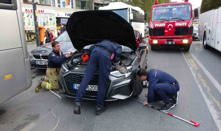 Olay, geçtiğimiz cuma günü Unkapanı’nda yaşandı. Edinilen bilgiye göre, aracıyla seyir halinde olan Bekir Topuz, yolun ortasında duran bir yavru kedi gördü. Yavru kediyi yolun ortasından kaldırmak isteyen Topuz, aracından inerek kedinin üzerine yürüdü. Yavru kedi ise kaçarak Topuz’un durdurduğu aracın motor kısmına girdi. Yaşadığı olayın ardından Topuz, durumu itfaiye ekiplerine bildirdi. Olay yerine sevk edilen itfaiye ekipleri, yavru kediyi araç motorundan çıkarmaya çalıştı. İtfaiyenin çabalarına rağmen motordan çıkarılamayan kedi, ekiplere zor anlar yaşattı. Araç, yavru kedinin kurtarılması için oto servisine götürüldü.
