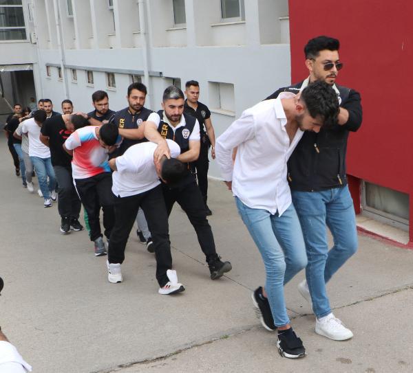 Emniyetteki işlemlerinin ardından sevk edildikleri adliyede mahkemeye çıkarılan şüphelilerden 7'si tutuklandı, 1'i adli kontrol şartıyla serbest bırakıldı. (DHA)