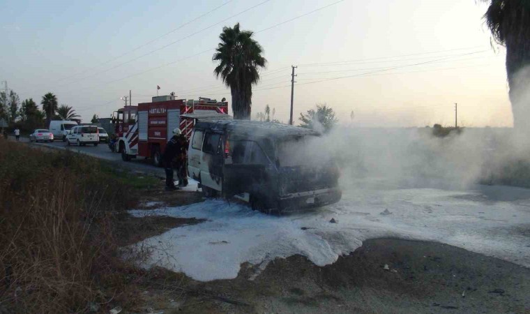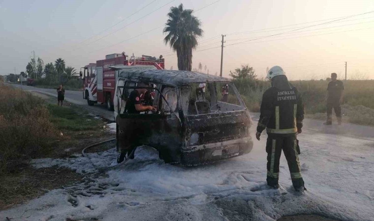Antalya’nın Manavgat ilçesinde kapalı kasa kamyonet itfaiyenin müdahalesine rağmen yanarak kullanılamaz hale geldi. Araç sürücüsünün aracın yanmaya başlamasıyla birlikte araçtan inerek olay yerinden hızla uzaklaştığı, evine gittiği belirlendi. Aracın trafikten men edildiği ortaya çıktı.