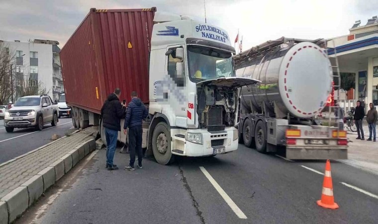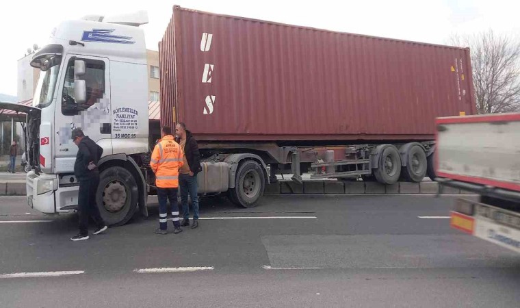 Aydın-Denizli karayolunda önüne çıkan araca çarpmamak için sürücüsünün manevra yaptığı tır refüjü aşarak karşı şeride geçti. Karşı şeritten gelen aracın olmaması muhtemel bir facianın önüne geçerken, şans eseri kazada yaralanan olmadı.