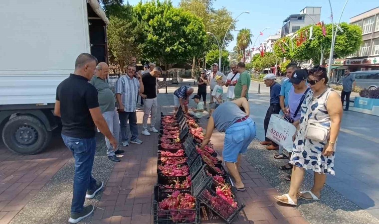 Yapılan konuşmaların ardından, kamyonetle getirilen Ejder Meyvesi Cumhuriyet Meydanı’nda vatandaşlara ücretsiz dağıtıldı. 2 bin civarındaki Ejder meyvesi vatandaşların yanı sıra yoldan geçen turistlerin yoğun ilgisiyle kısa sürede tükendi.