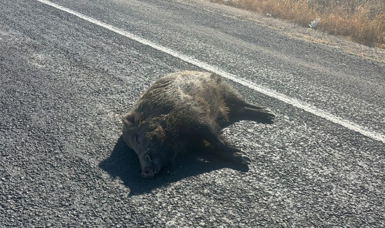 Yoldan geçen sürücüler, herhangi bir kaza yaşanmaması için telef olan domuzu yol kenarına bıraktı.