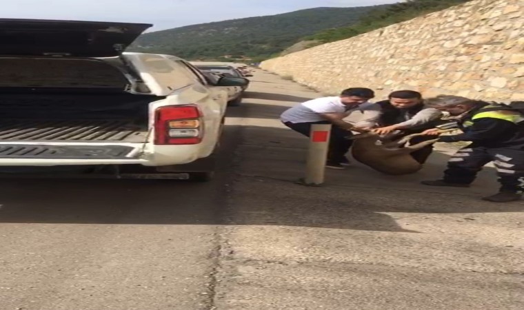 Karabük’te kara yolunun ortasında yaralı bulunan karaca, tedaviye alındı.