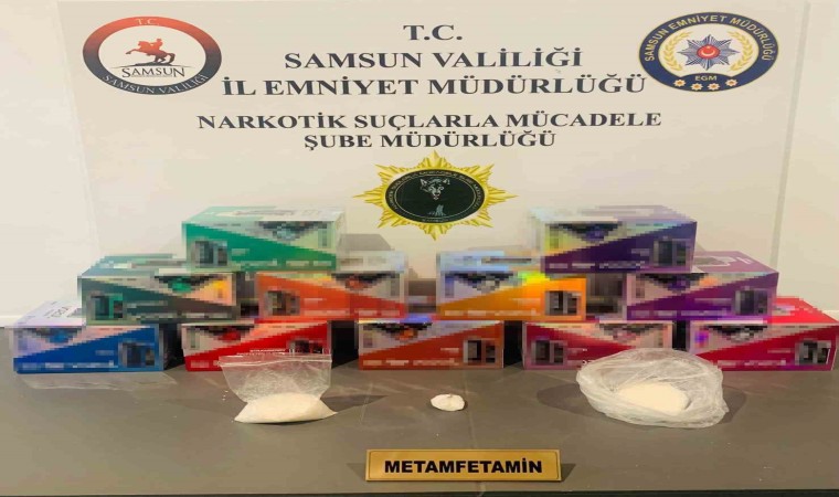 Edinilen bilgiye göre, Samsun Emniyet Müdürlüğü Narkotik Suçlarla Mücadele Şube Müdürlüğü ve İstihbarat Şube Müdürlüğü ekipleri tarafından yapılan takip sonucu İlkadım ilçesi Derecik Mahallesi’nde Samsun-Ankara karayolunda durdurulan otomobilde arama yapıldı. Yapılan aramada 100 gram metamfetamin ve 110 adet kaçak elektronik sigara ele geçirildi. Araçta bulunan Ş.Y. adlı kadın, "uyuşturucu madde ticareti yapmak" suçundan gözaltına alındı. Bugün Samsun Adliyesine sevk edilen Ş.Y., çıkarıldığı mahkemece tutuklanarak Samsun T Tipi Kapalı Cezaevine gönderildi.