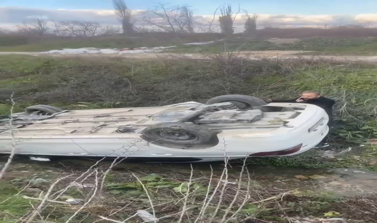 Bursa’da bir otomobil sürücüsü aracıyla dere yatağına uçtu. Ters dönen otomobilden çıkan sürücü o anları "hiçbir şey yokmuş" gibi telefonda anlatırken, arkadaşı o anları gülerek kayda aldı.