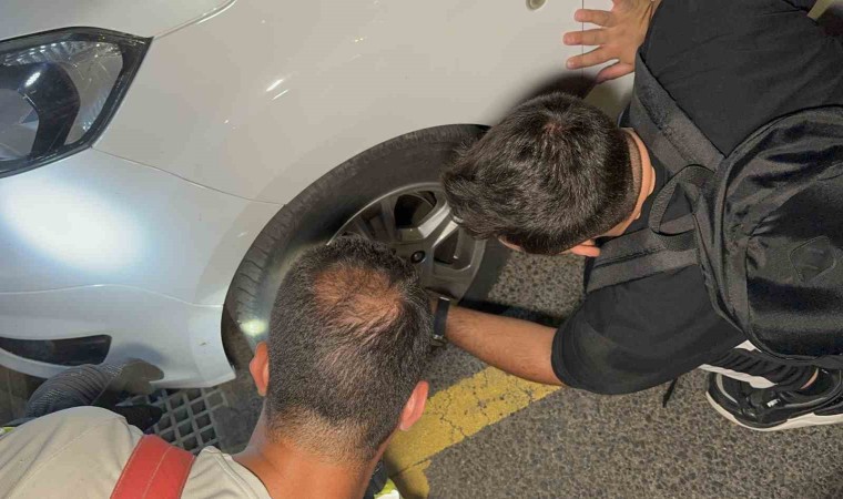 Düzce’de aracın kaputuna giren kedi, itfaiye ekiplerince kurtarılmak istendiği esnada başka araca geçti. Yavru kedi uzun uğraşlara rağmen kurtarılamazken, aracın camına yazı yazıldı.