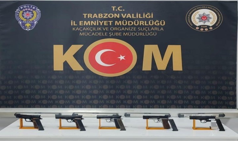 Trabzon Emniyet Müdürlüğü Kaçakçılık ve Organize Suçlarla Mücadele Şube Müdürlüğünce M.K. isimli şahsın bulunduğu araç içerisinde arama yapıldı. Yapılan aramada 5 adet ruhsatsız tabanca, tabancalara ait 5 adet şarjör ele geçirildi. Düzenlenen operasyonda gözaltına alınan M.K. isimli şahıs hakkında adli işlemlerin sürdüğü belirtildi.