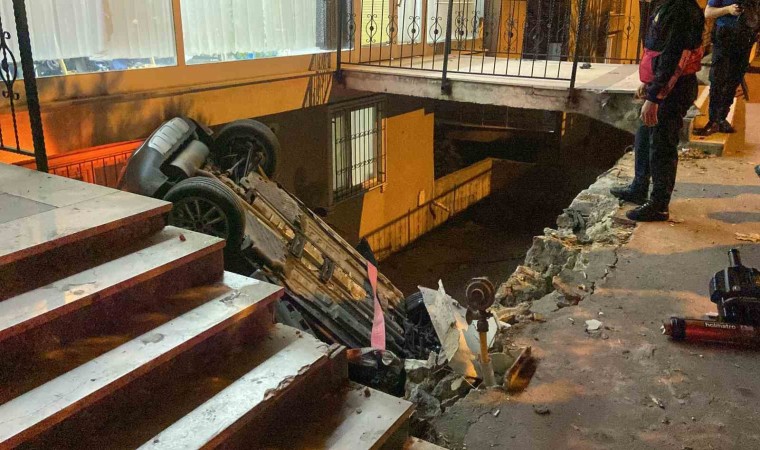 Kocaeli’nin Gebze ilçesinde sürücü ile yolcu arasında çıkan tartışmada kontrolden çıkan otomobil evin bahçesine uçarak takla attı. Ters duran araçta sıkışan yolcu itfaiye ekipleri tarafından çıkarılırken durumun ağır olduğu öğrenildi.