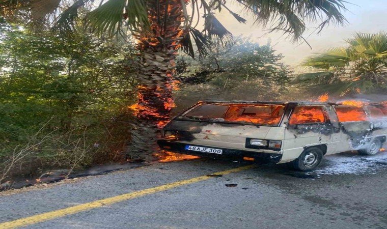 Muğla’nın Ortaca ilçesinde park halindeki araçta başlayan yangın yol kenarındaki ağaçlara sıçradı.