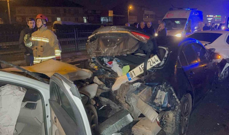 Düzce’de seyir halindeki aracında bayıldığı iddia edilen sürücü önündeki araca çarparak zincirleme kazaya sebebiyet verdi. Kazada 3 kişi yaralandı.
