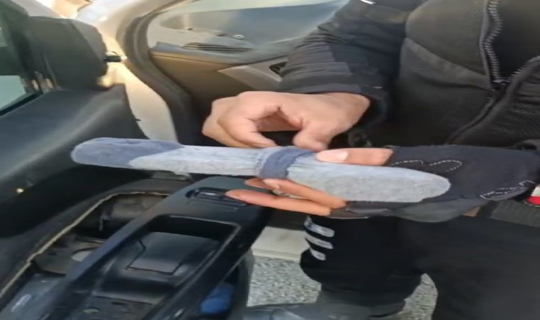 Kastamonu’da motosikletli polis timleri, şüpheli bir aracın sol ön kapı döşemesinde çorap içinde ruhsatsız tabanca ele geçirdi.