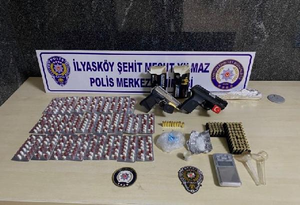 İl Emniyet Müdürlüğü İlyasköy Polis Merkezi Amirliği ekipleri, İlkadım ilçesi Hilal Sokak'ta devriye gezerken, şüpheli gördükleri otomobili durdurdu. Ekiplerin araçta yaptığı aramada 313 kapsül sentetik hap, 20 gram metamfetamin, 30 ecstasy hap, 1 çalışır vaziyette hassas terazi, 1 ruhsatsız tabanca ve şarjör ile 119 mermi ve 1 kurusıkı tabanca ele geçirildi. Olayla ilgili araçtaki 5 kişi gözaltına alındı. (DHA)