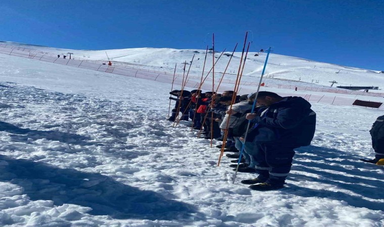 Eğitimin ikinci aşaması olan saha uygulaması Konaklı Kayak Merkezi’nde yapıldı. Bu eğitimde, kar altında kazazede arama, bulma ve çıkarma, fiziksel ve psikolojik kontrol yapma, güvenli alana sevk etme, karda yürüyüş teknikleri ve sahada olumsuz durumlarda ekiplerin kendilerini korumaları için acil durum barınağı yapma eğitimleri verildi.