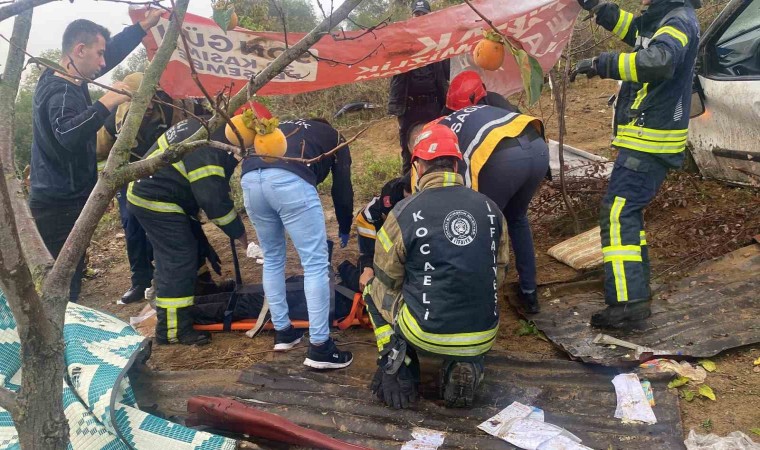 İzmit ilçesinde sağanak yağış sebebiyle kayganlaşan yolda direksiyon hakimiyetini kaybeden hafif ticari araç, yol kenarında bulunanda araziye uçtu. Yaklaşık 50 metre takla atan araçtaki iki kişiyi itfaiye ekipleri çıkardı. Yaralıların yağmurdan ıslanmaması için çadır gerildi.