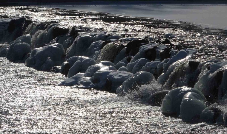 Soğukların etkili olduğu Ardahan’da Kura Nehri’nin devamında kurulan sette akan su buz tuttu. Buz tabakaları oluşan Kura Nehri’ndeki görüntüler Antarktika’yı akıllara getirdi.