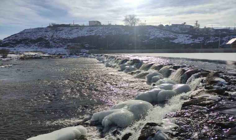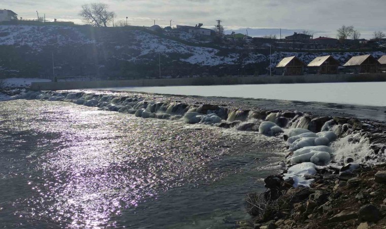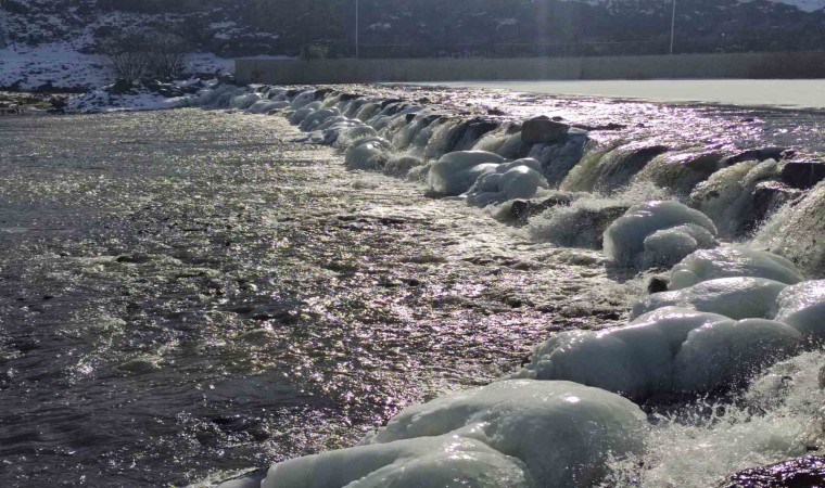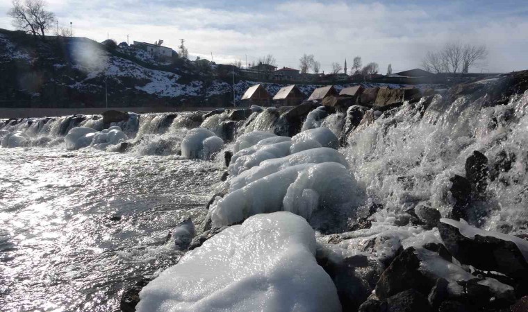 Kışın sert ve çetin geçtiği kentte özellikle sabaha doğru etkili olan dondurucu soğuk nedeniyle kent merkezinden geçerek, Gürcistan ve Azerbaycan üzerinden Hazar Denizi’ne dökülen Kura Nehri’nin yüzeyi buzla kaplandı. Donan nehrin devamında kurulan ‘set’ adeta bir şelale görünümünü aldı.