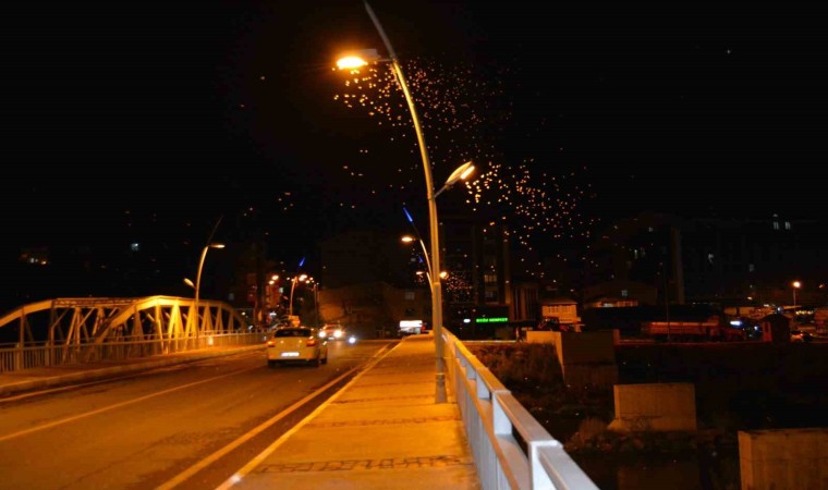 Ardahan’da, her yıl ağustos ayında yaşanan ’kelebeklerin ölüm dansı’ başladı. Havanın kararmasıyla birlikte sokak aydınlatma ışıklarının etrafında dakikalarca uçup, bir süre sonra ölen kelebekler, yerde beyaz bir örtü oluşturdu.