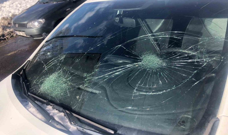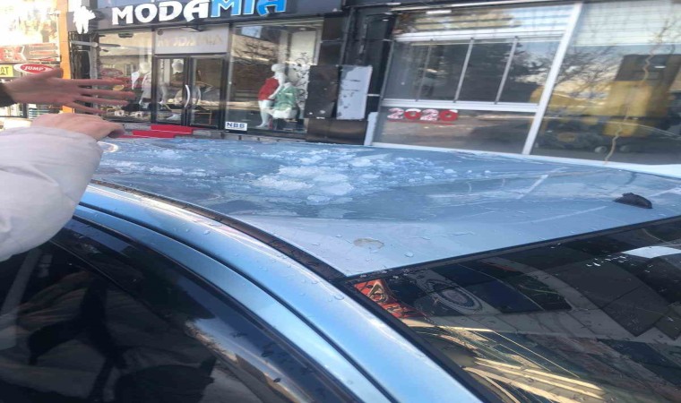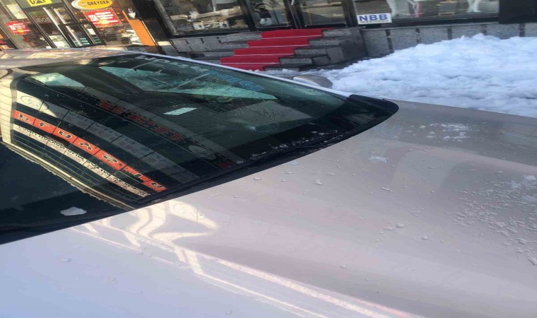 Ardahan’da bir iş yerinin önünde park halinde bulunan 3 aracın üzerine çatıdan kar kütlesi düştü.