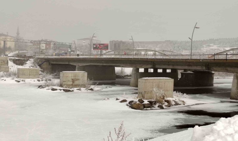 Ardahan’da dondurucu soğuklar ve sis nedeniyle ağaçları kırağı kapladı, Kura Nehri’nin yüzeyi buz tuttu.