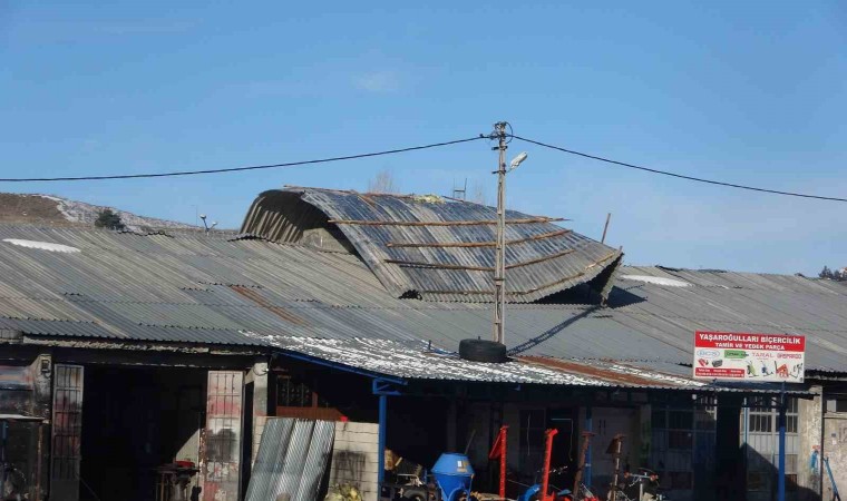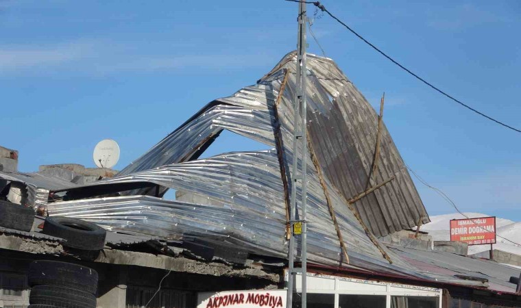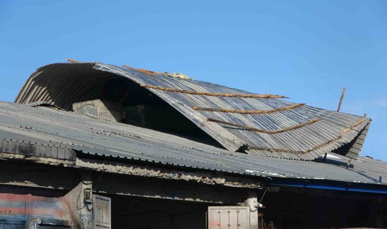 Ardahan’da şiddetli rüzgar çatıları uçurdu.