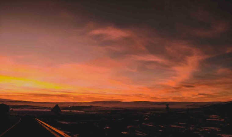Ardahan’da sabah saatlerinde oluşan gün doğumuyla birlikte gökyüzü kızıla boyanırken, ortaya çıkan manzara mest etti. Ardahan-Kars kara yolunun Ortageçit köyünde güneşin yüzünü gösterdiği anda ortaya çıkan kızıllıkla gün doğumu görsel şölene döndü, kartpostallık görüntüler ortaya çıktı.