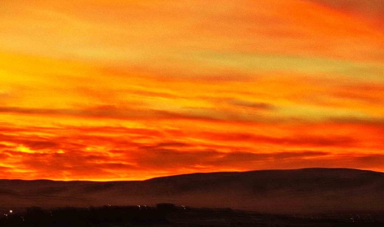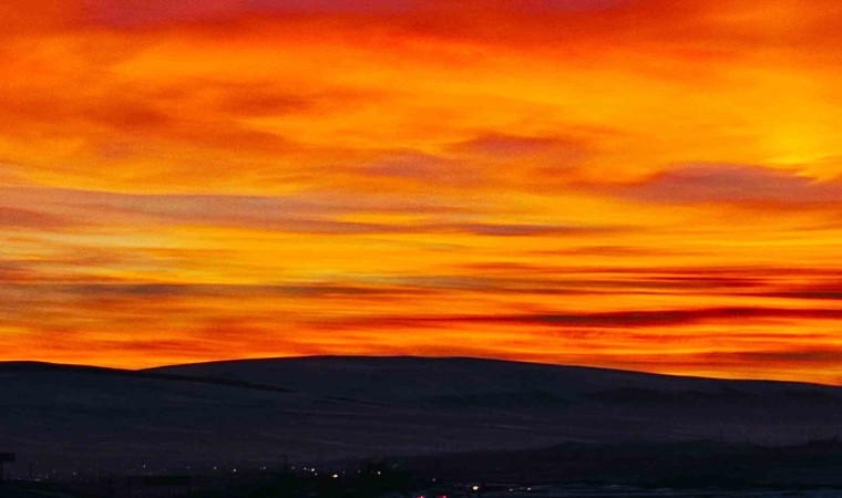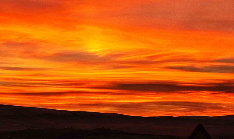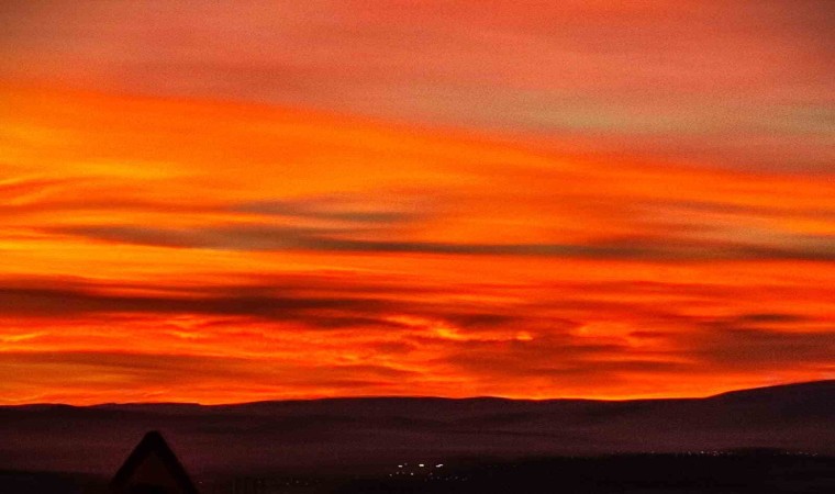 Ardahan’da sabahın ilk saatlerinde gökyüzü kızıla büründü.