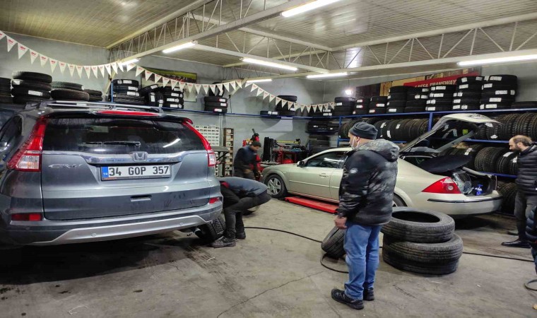 Sürücüler, son günlerde hava sıcaklığının eksi dereceye düşmesiyle kış lastiğini değiştirme ihtiyacının zorunluluk haline geldiğini söylediler.