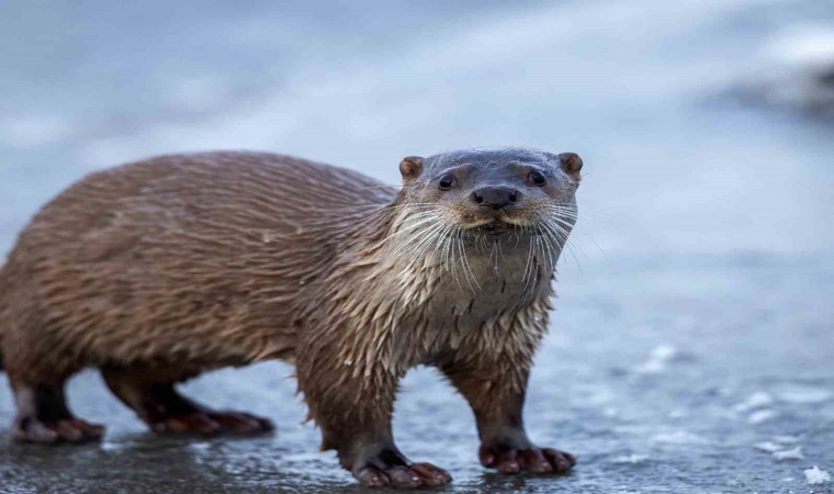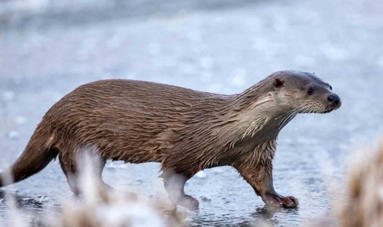 Ardahan’da nesli tükenmekte olan su samuru, buz tutan Kula Nehri üzerinde görüntülendi.