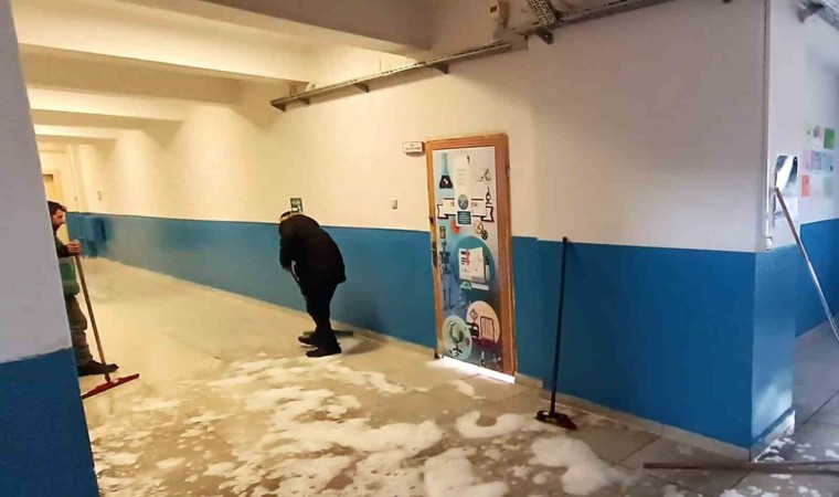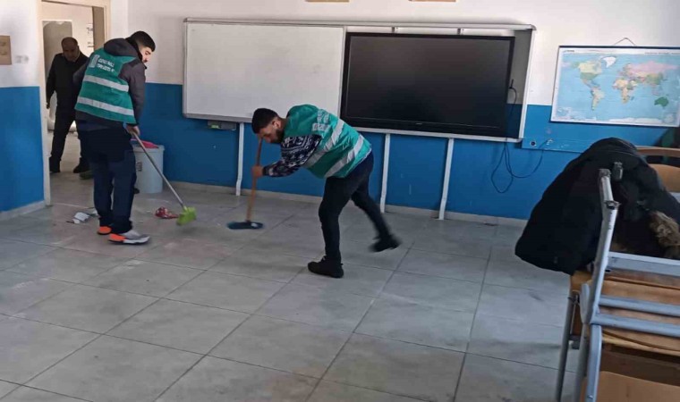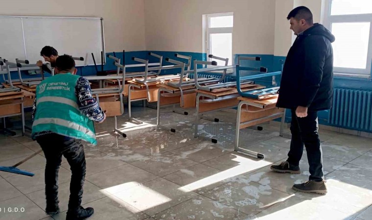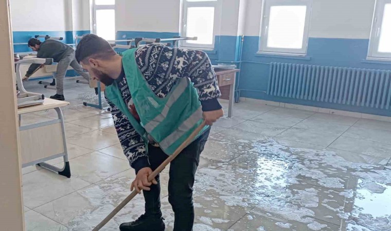 Denetimli serbestlik tedbiri altındaki hükümlüler, ara tatilde Hanak ilçesindeki 1 okulda temizlik bakım onarım çalışması yaptı.