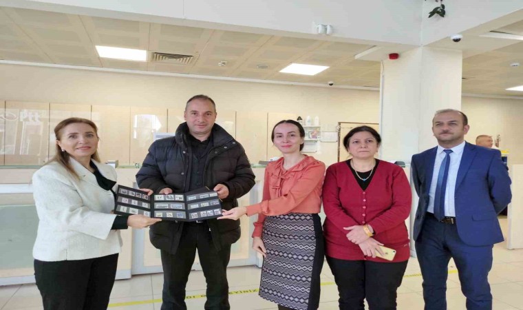 Ardahan’da PTT’nin 184’üncü kuruluş yıl dönümü dolayısıyla 184 sıra numarasıyla hizmet alan müşteriye pul koleksiyonu hediye edildi. Ardahan PTT Başmüdürü Jülide Kaya ile kurum personeli, postanedeki 184. sıra numarasını alan Şakir Balcı’ya kuruluş yıl dönümü için özel hazırlanan pul albümü ve çeşitli hediyeler takdim etti.