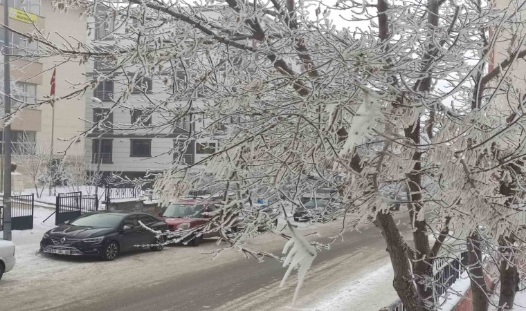 Dondurucu soğukların etkili olduğu Ardahan’da ağaçlar kırağı tuttu, otomobiller çalışmadı.