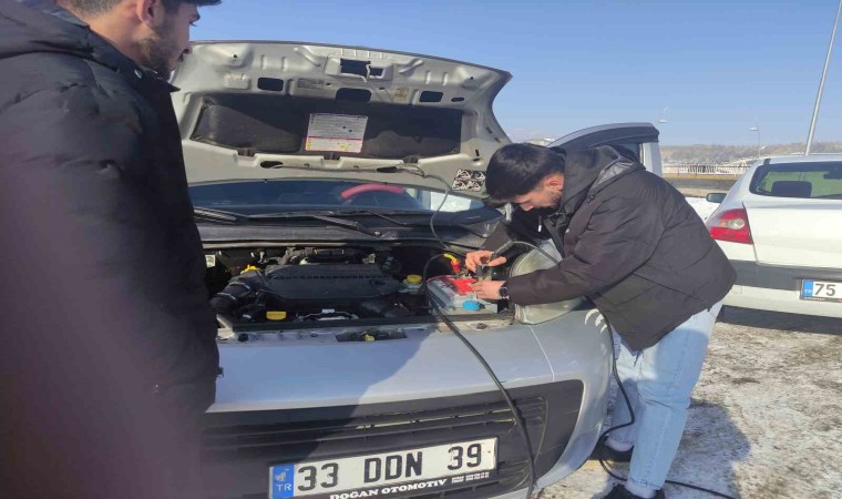 Otomobili çalışmayan Muhammet Avşar, akü kullanarak çalıştırmaya çalıştı. Avşar, ’’Dondurucu soğukların etkisiyle aracımız çalışmıyor. Ne yapsak boş, en iyisi sobanın başından ayrılmamak’’ dedi.