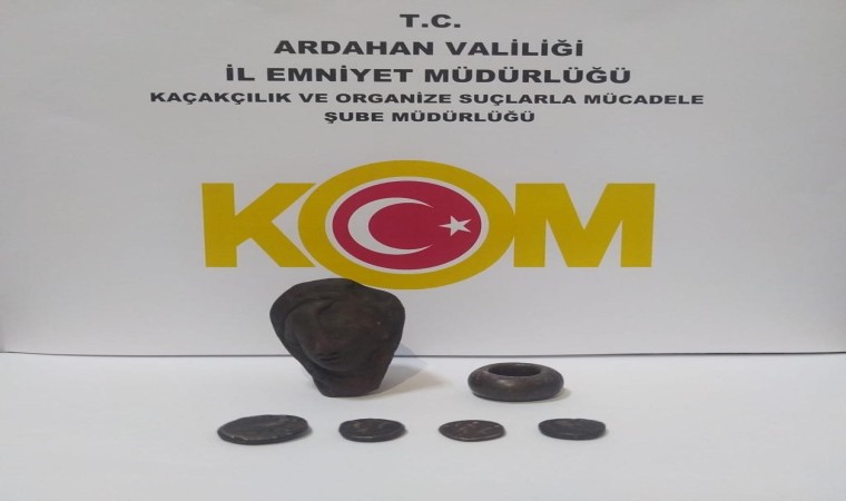 Ardahan’da Emniyet Müdürlüğü Kaçakçılık Suçlarıyla Mücadele Şube Müdürlüğü ekipleri, kentte tarihi eser kaçakçılığını önleme çalışmaları kapsamında 2 adrese operasyon düzenledi. Adreslerde yapılan aramada tarihi eser niteliği olduğu değerlendirilen 4 sikke, yüzük ve heykelcik ele geçirildi.