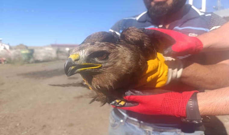 Ardahan’da köylülerce yaralı halde bulunan kara çaylak, tedavi altına alındı