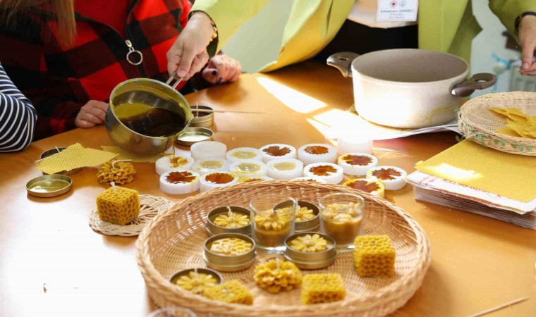 Teorik bilgilerin ardından ilk olarak temel petekler eritilerek silikon kalıplara döküldü. Kuruma sürecinin ardından boyama işlemi gerçekleştirildi. Maharetli kadınlar kısa sürede ortaya birbirinden güzel ürünler çıkardı. Arıcılıkta yenilikçi ve ekonomik değeri yüksek ürünler üretmek, kadın girişimciliği destekleyerek kadınların ekonomik hayata daha fazla katılımını sağlamak, yerel üretim ile el sanatlarını teşvik ederek kültürel ve ekonomik sürdürülebilirliğe katkı sunmak hedefiyle düzenlenen programda çevre dostu doğal malzemelerle üretim yapılarak çevre bilincine de dikkat çekildi.