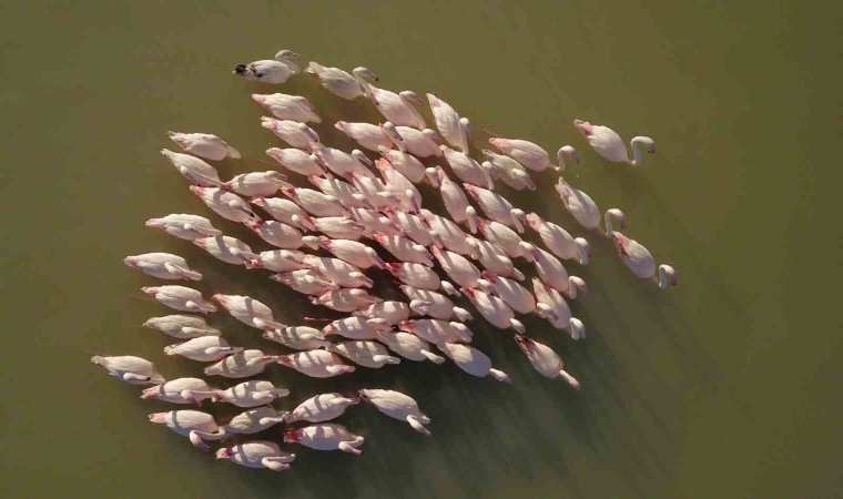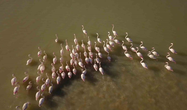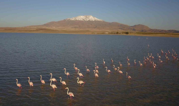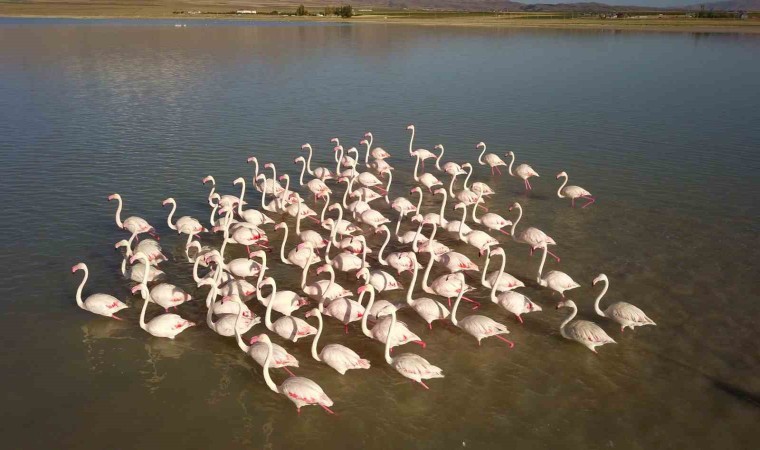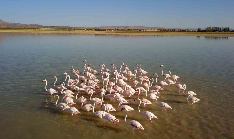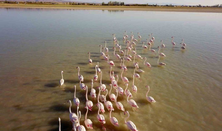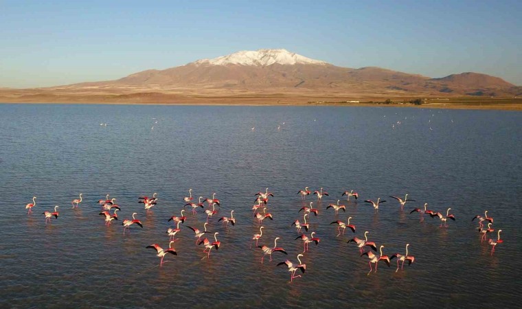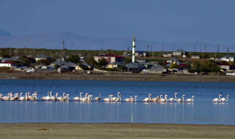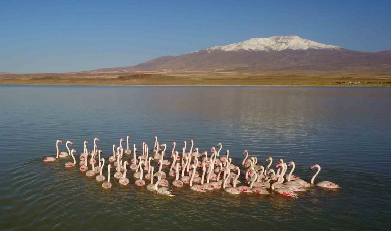 Bitlis’in Adilcevaz ilçesi sınırlarında bulunan ve ‘kuş cenneti’ olarak bilinen Arin Gölü kış mevsimi öncesi son misafirleri olan flamingoları ağırlıyor.