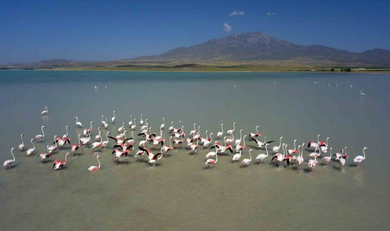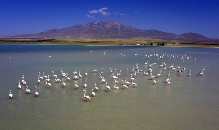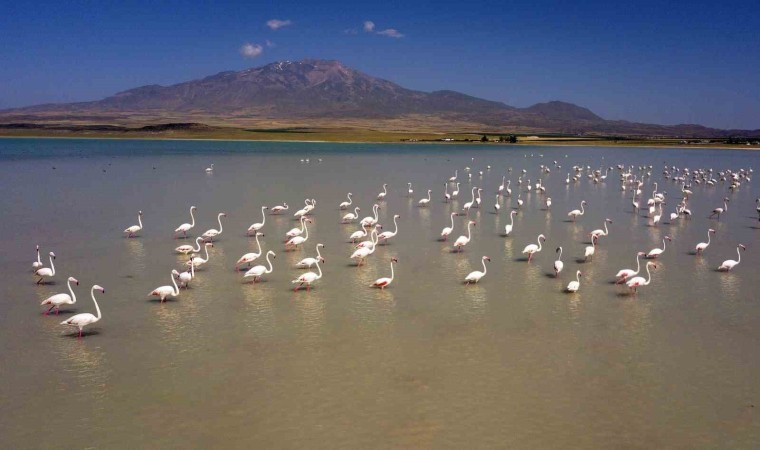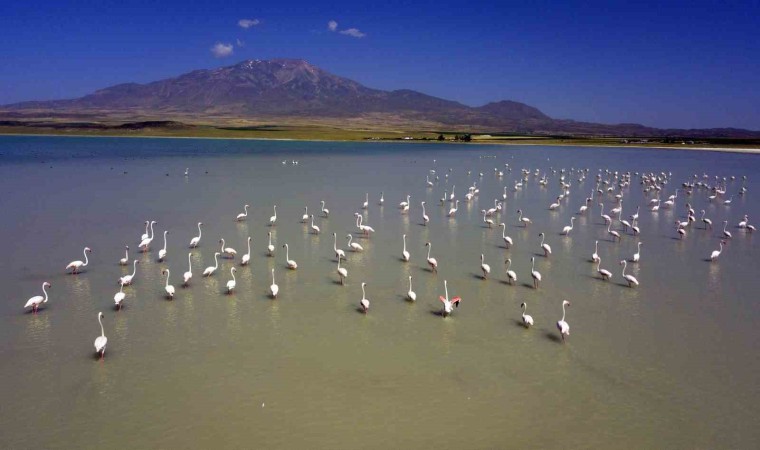Bitlis’in Adilcevaz ilçe sınırlarındaki Arin Gölü renkli misafirleri flamingoları ağırlamaya başladı.