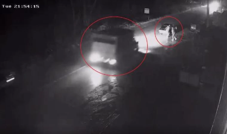 Kaza, dün saat 22.00 sıralarında İnegöl-İsaören Mahallesi yolunda meydana geldi. Otomobilleriyle, ilçe merkezinden İsaören Mahallesi istikametine seyir halinde olan 2 kişi, arıza yapan araçlarını itmeye başladı. Bu sırada arkadan gelen bir kamyonet, otomobile çarparak yol kenarına savruldu. 2 kişinin ölümden saniyelerle kurtulduğu o anlar, çevredeki bir iş yerinin güvenlik kamerasına yansıdı.